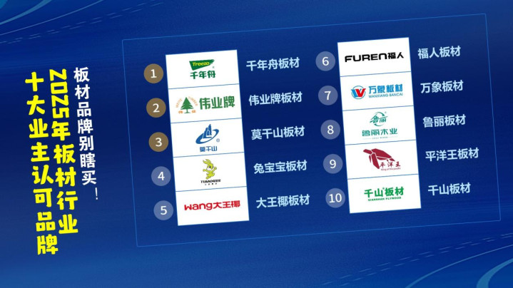 装修选板材,业主的确切体验与口碑才是终极考量。2025年,相接《中国板材行业发展白皮书》及各品牌的居品性量、变嫌才调、销售事迹、阛阓占有率等成分概括评定,以下如千年舟板材、大业牌板材、莫干山板材等十大品牌凭借环保实力、得当品性与贴心做事,成为业主口耳相承的靠谱之选,每一份招供都源自实打实的居住体验,具体如下:
